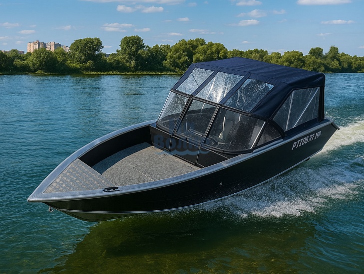 Задняя откидная дверь обеспечивает легкий доступ к кормовой части лодки, что особенно удобно при обслуживании мотора или другого оборудования.